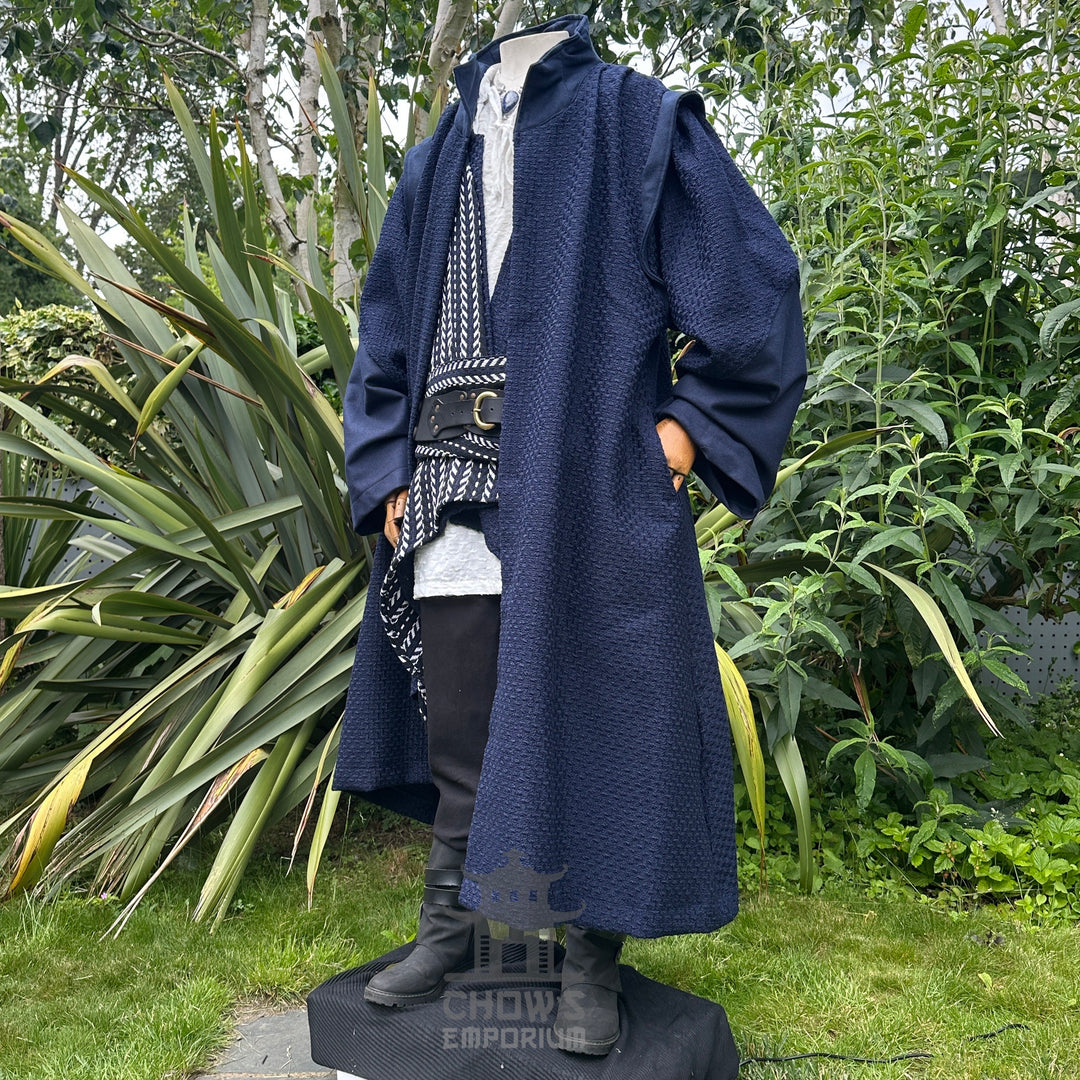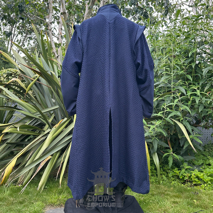 Medieval Robe High Collar – Rich wool-blend with contrasting accents, high collar, flared back, full-length design.