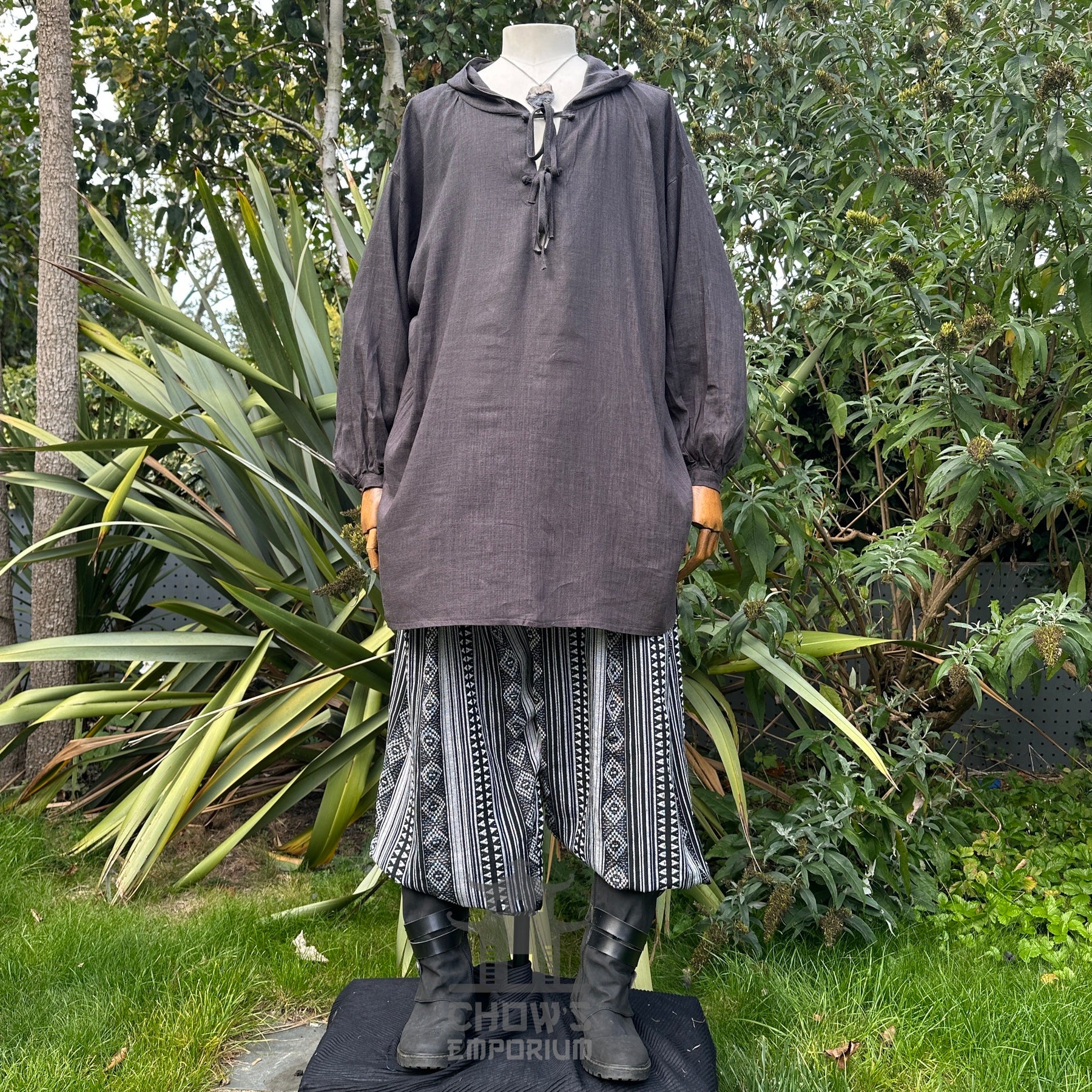 Hooded Medieval Shirt in Grey Cotton & Linen