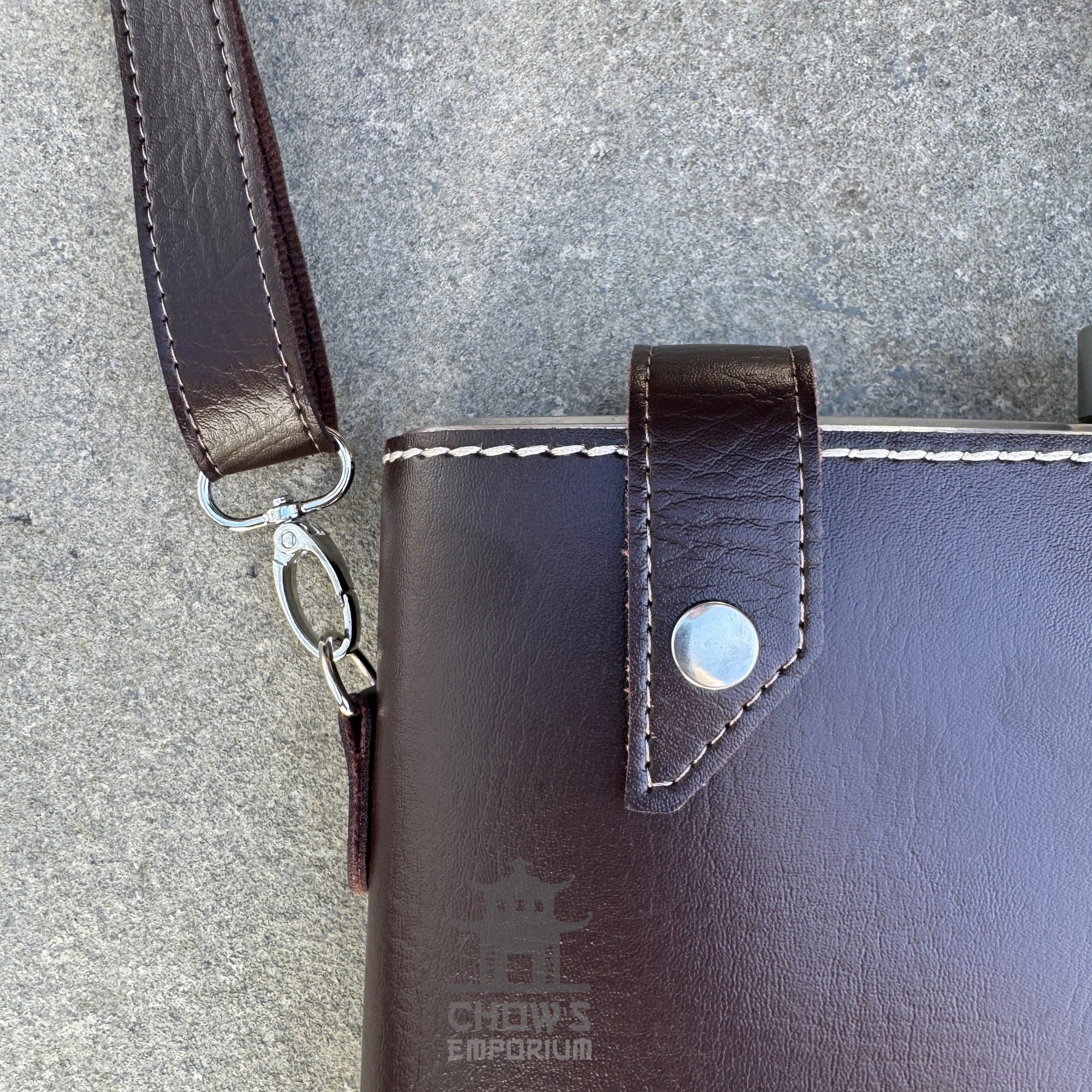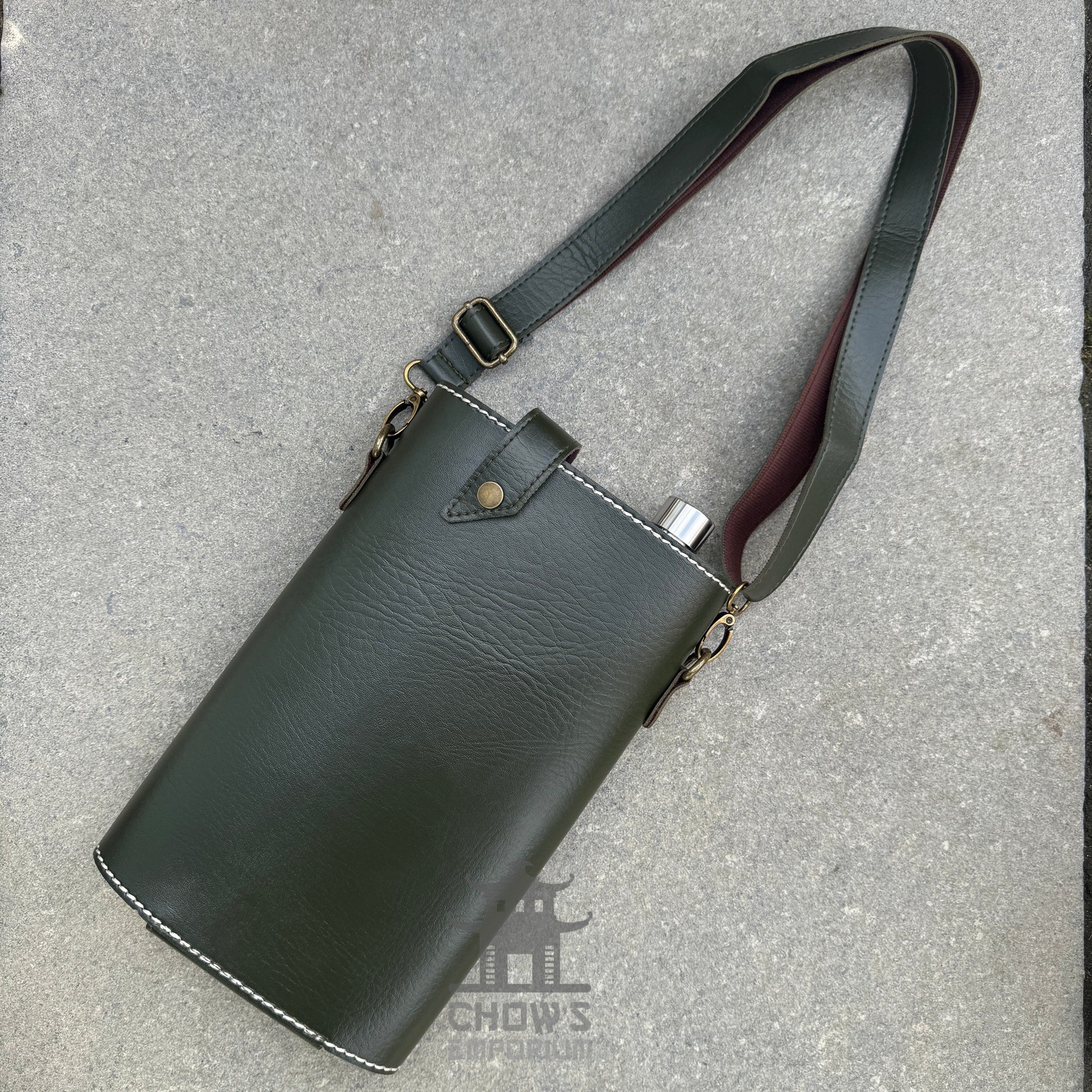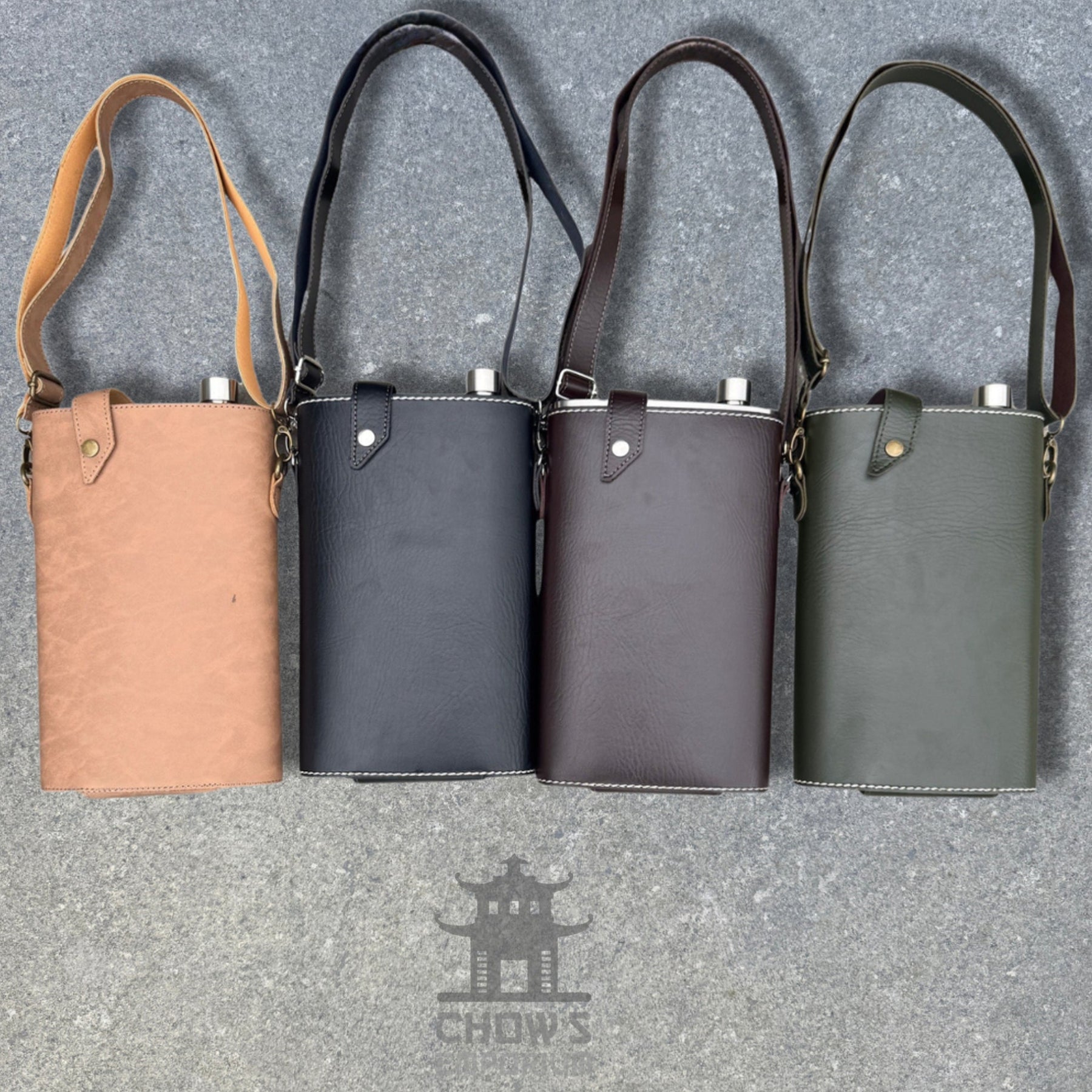 64oz Rectangular Hip Flask in a Faux Leather Carrier with Adjustable Shoulder Strap