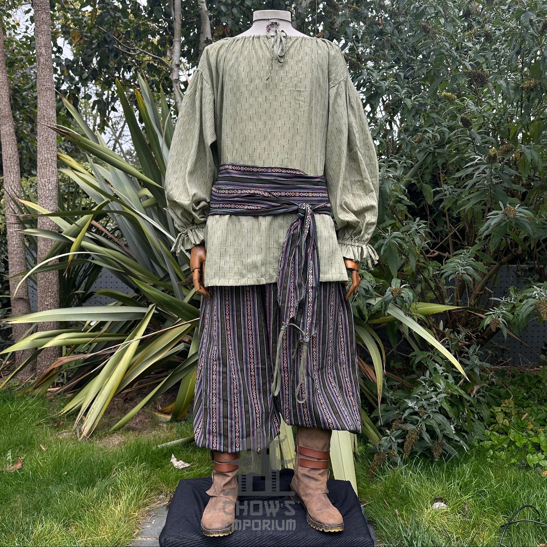 LARP Basic Outfit - 3 Piece Green & Multi Striped (Shirt, Pants & Sash)