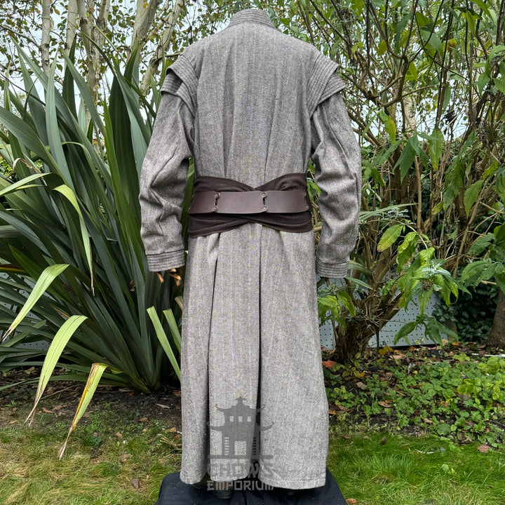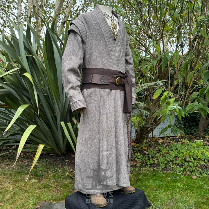 The Medieval Mystic Healer LARP Outfit features a noble, adventure-ready robe crafted from breathable, warm, and durable herringbone wool. Designed for versatility, it can be worn open or belted for a heroic, fantasy-inspired look. Perfect for LARP events, renaissance fairs, and medieval or fantasy roleplay, this costume brings authentic style to every adventure.