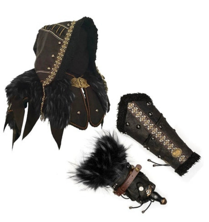 Ornate Vambraces: Faux Leather. Faux Fur. Fleece Lining.