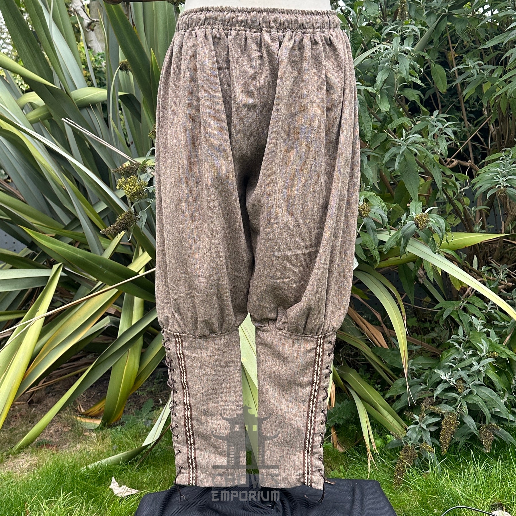 Brown Wool Viking Pants with Braiding only.