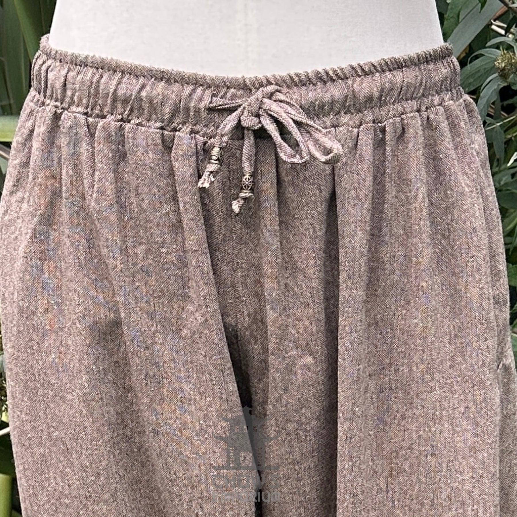 brown cotton Viking pants, LARP trousers, baggy adventure pants, Viking-style base layer, fantasy festival trousers, Ren Faire pants, mage/rogue attire