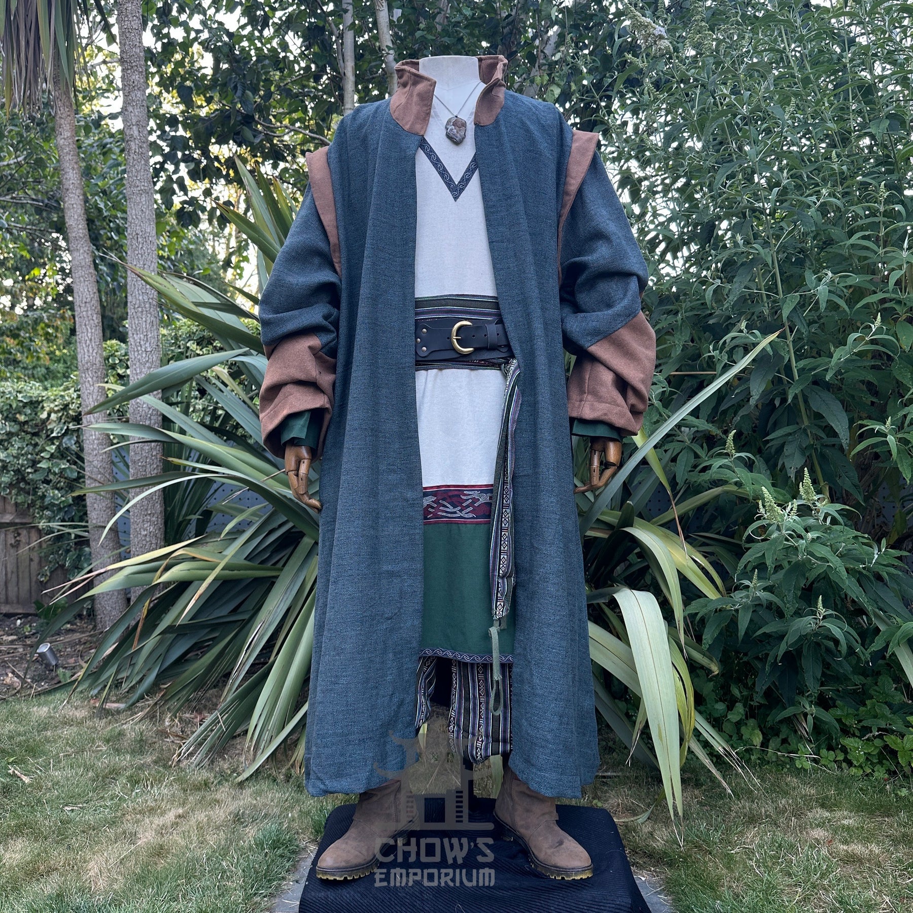 - Teal High Collar Robe with contrasting brown detail
