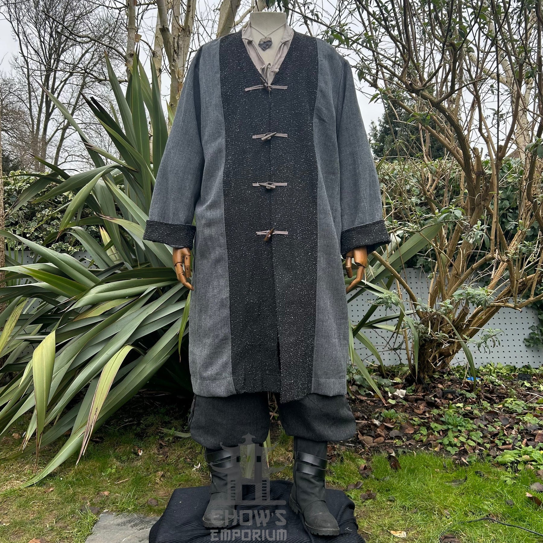 Pirate Coat – Two-Tone – Textured cotton and suede-effect coat with contrasting front panels and cuffs, designed for freedom of movement and layered wear.