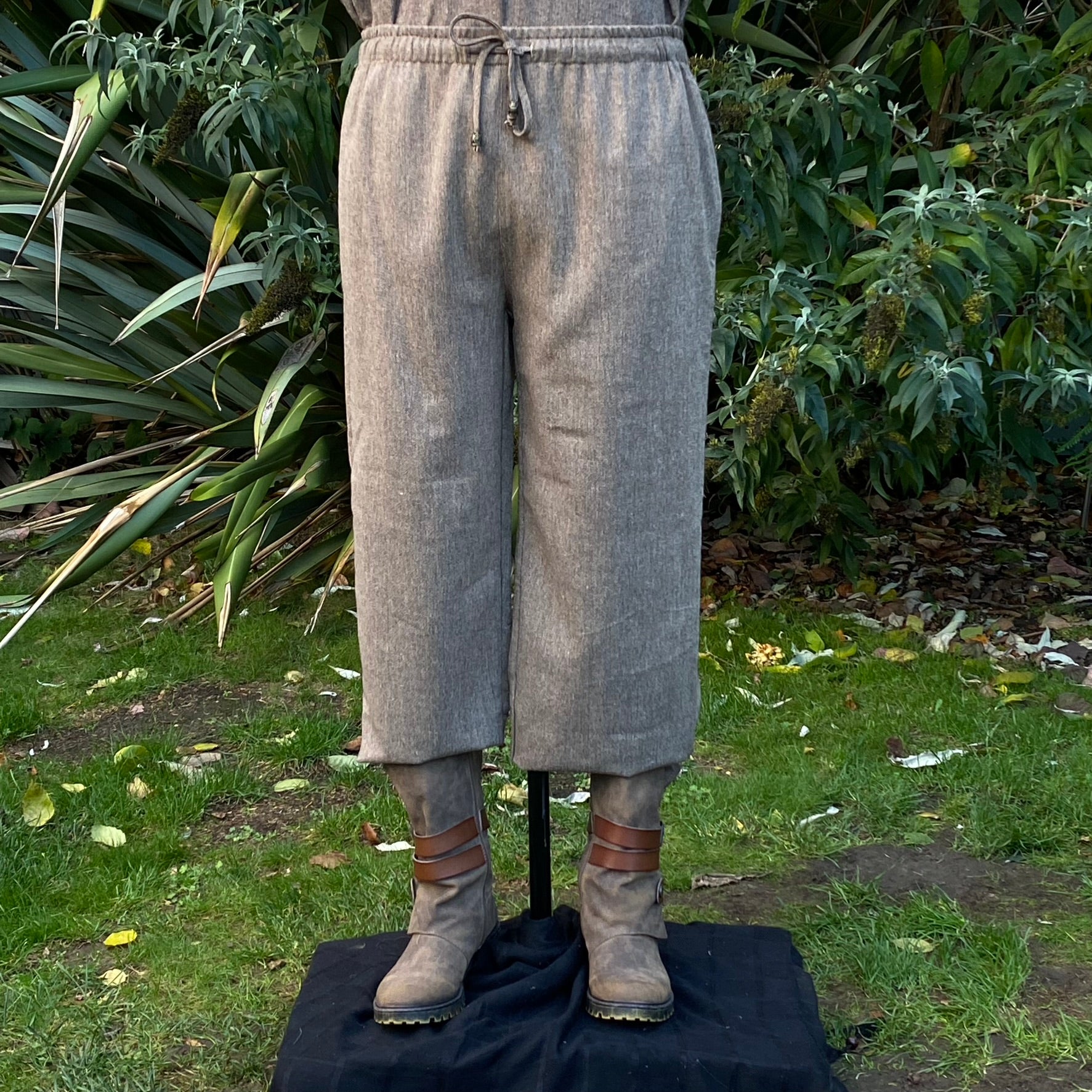 Wool Viking Pants – Soft, breathable wool trousers with a relaxed baggy fit, tapered ankles, side lace-up detailing, and adjustable drawstring waistband. Reinforced stitching ensures durability for extended wear.